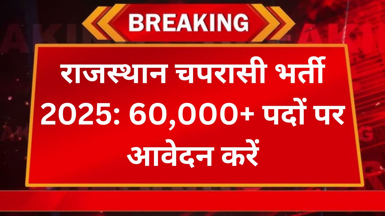 राजस्थान सरकार जल्द ही 60,000 से अधिक चपरासी (चतुर्थ श्रेणी कर्मचारी) पदों पर भर्ती प्रक्रिया शुरू करने जा रही है। ...